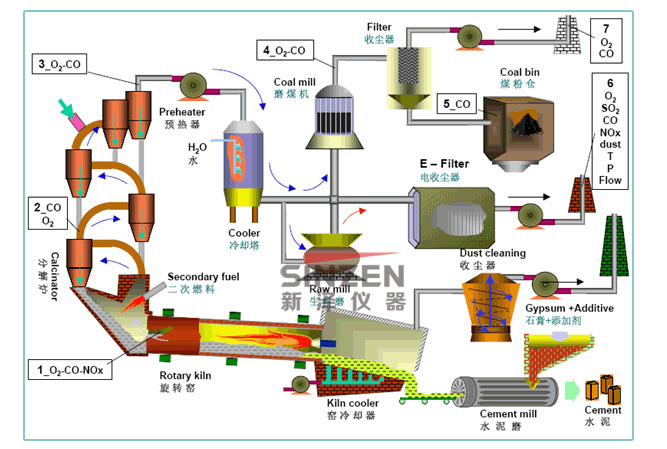 水泥工業(yè)在燃料分解、燃燒等生產(chǎn)過程中會產(chǎn)生粉塵、SO2、NOX、CO、CO2等氣體對大氣環(huán)境產(chǎn)生嚴(yán)重影響。次檢查這些氣體的含量,對于節(jié)能減排、提高生產(chǎn)效率、降低能耗和保障生命及生產(chǎn)的安全至關(guān)重要。旋窯、回轉(zhuǎn)窯是能耗大戶,為了節(jié)能降耗,實(shí)現(xiàn)燃燒爐中煤氣的充分燃燒,就需要在線檢測回轉(zhuǎn)窯煙氣的組份含量,在保證燃燒溫度的基礎(chǔ)上調(diào)節(jié)好煤氣和空氣的配比,達(dá)到節(jié)能降耗的目的。 新澤科技?xì)怏w分析技術(shù)能夠準(zhǔn)確可靠地測量各類工業(yè)氣體含量,為水泥建材提供完整的氣體分析解決方案。